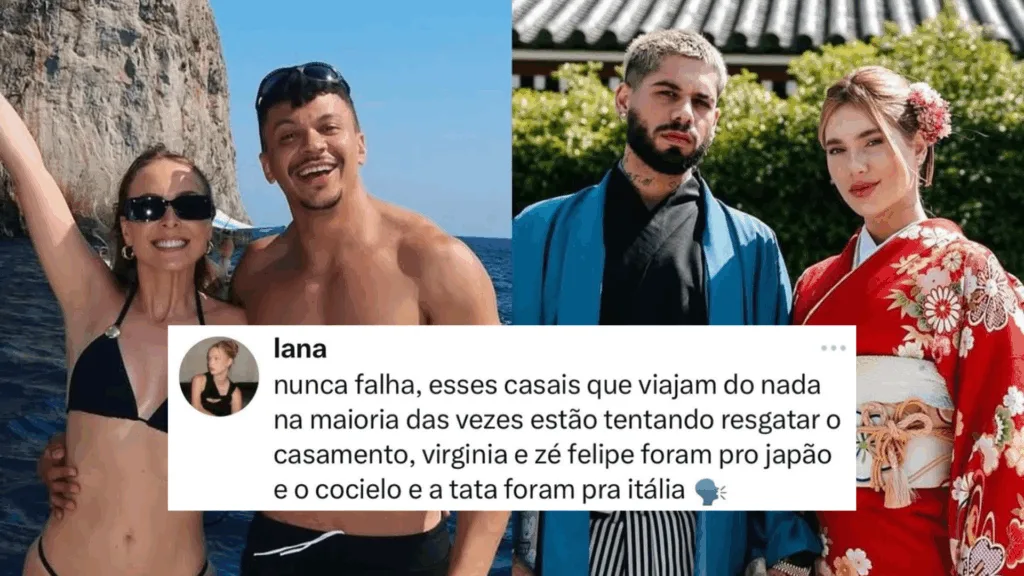 A coincidência entre os destinos e os términos se tornou tema de debate bem-humorado online, com fãs comentando: “Se o casal famoso viajar de surpresa, já sabemos o que vem por aí”.