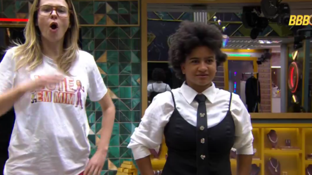 Ao vestir a roupa, a sister ganhou elogios de Ana Paula e Juliano. “Esse é disparado o look mais bonito que você já vestiu”, disse a jornalista.