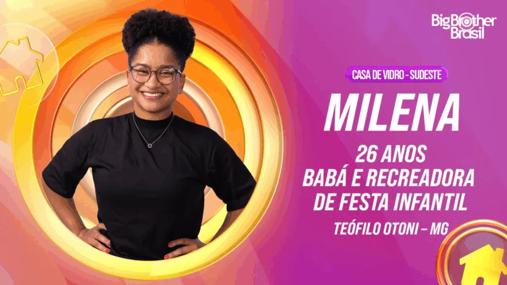 Milena tem 26 anos e é natural de Itambacuri, Minas Gerais. Atualmente, mora em Teófilo Otoni, no mesmo estado. Começou a trabalhar como empregada doméstica e babá ainda muito nova; aos 22 abriu sua própria empresa de recreação infantil, com a qual complementa o sustento de sua casa. Também cursa faculdade de Terapia Ocupacional. Define-se como uma pessoa leal e parceira. Conta que adora agradar e que fica incomodada quando não gostam dela; nessas horas faz questão de mostrar que é melhor tê-la como amiga do que como inimiga. “Sou a sensação da minha cidade. Eu sou do povo”, declara Milena, que tem uma irmã gêmea. Apesar da infância complicada que viveu, acredita que tudo foi ensinamento e tem muito orgulho da pessoa que é.