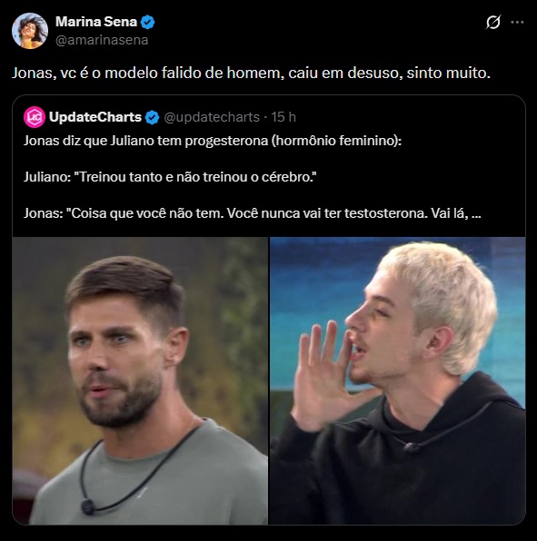 “Jonas, vc é o modelo falido de homem, caiu em desuso, sinto muito”, disparou ela no X.