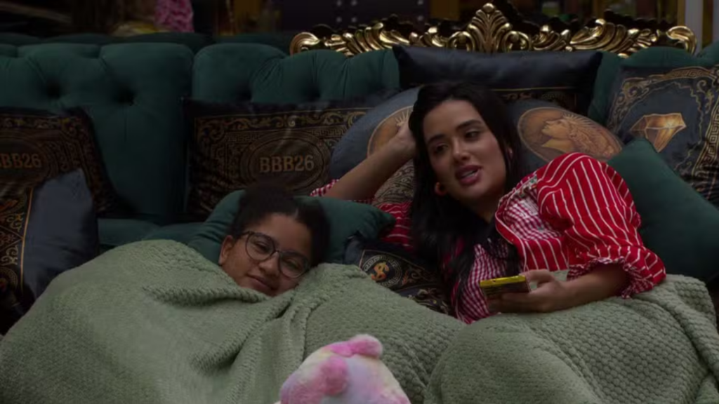 “Eu menti aquele dia! Eu quero conhecer ela”, afirmou Milena para Jordana. “O que você mentiu?”, questionou Ana Paula. “Que não queria me conhecer e agora ela quer”, disse Jordana, e Milena completou: “Quero saber mais da vida das pessoas. A gente conhece o raso do raso.”