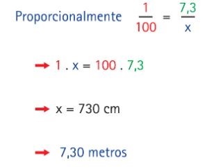 Na planta de uma casa foi usada a escala 1:100. Verificando que o comprimento de uma sala é 7,3 cm, qual o comprimento real da sala?