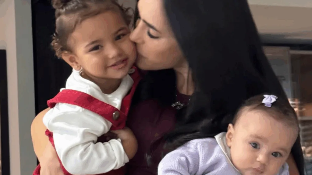 A publicação reforça o carinho da mãe pelas pequenas e o momento especial que vive em família.