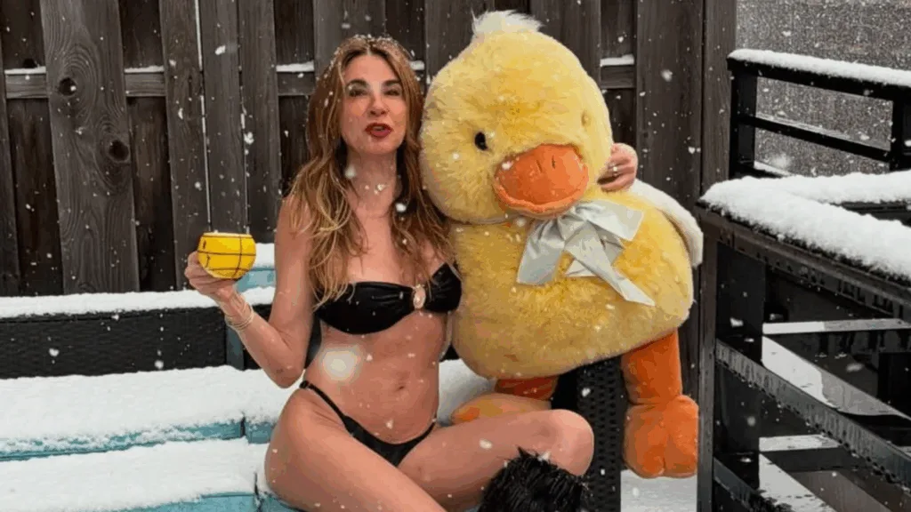 Luciana Gimenez posa de biquíni durante nevasca em Nova York