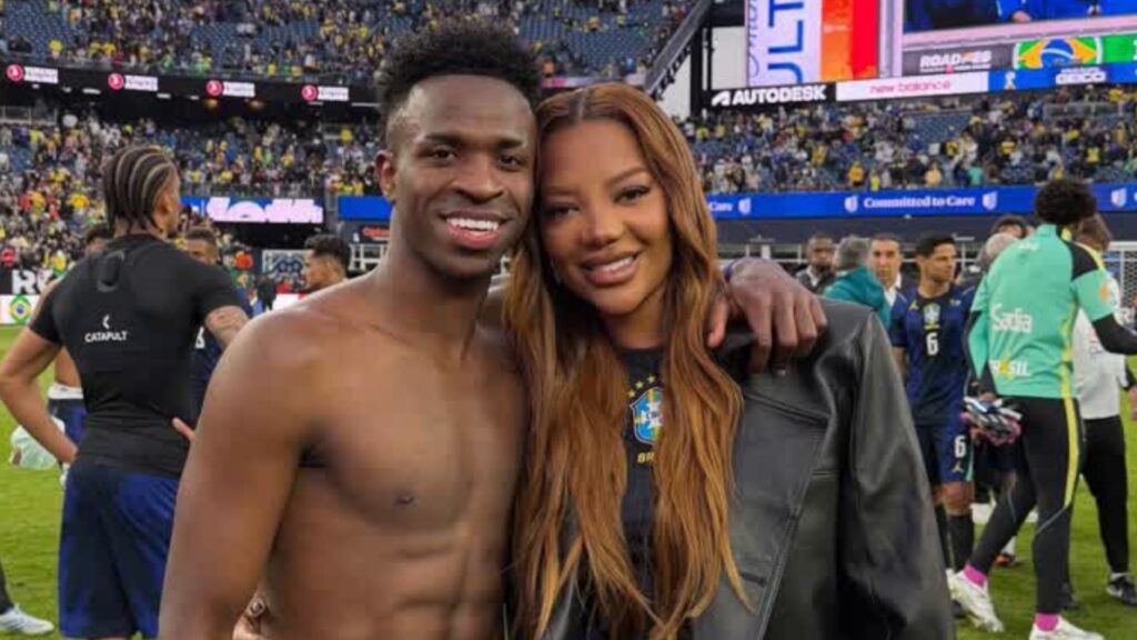Após a derrota do Brasil no amistoso contra a França, em Boston, nos Estados Unidos, Ludmilla apareceu entrando em campo e conversando com Vinicius Júnior.