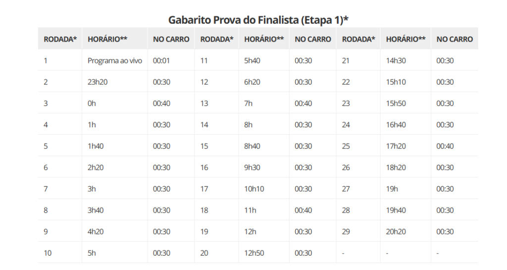 Confira os horários previstos para cada rodada da etapa do carro: